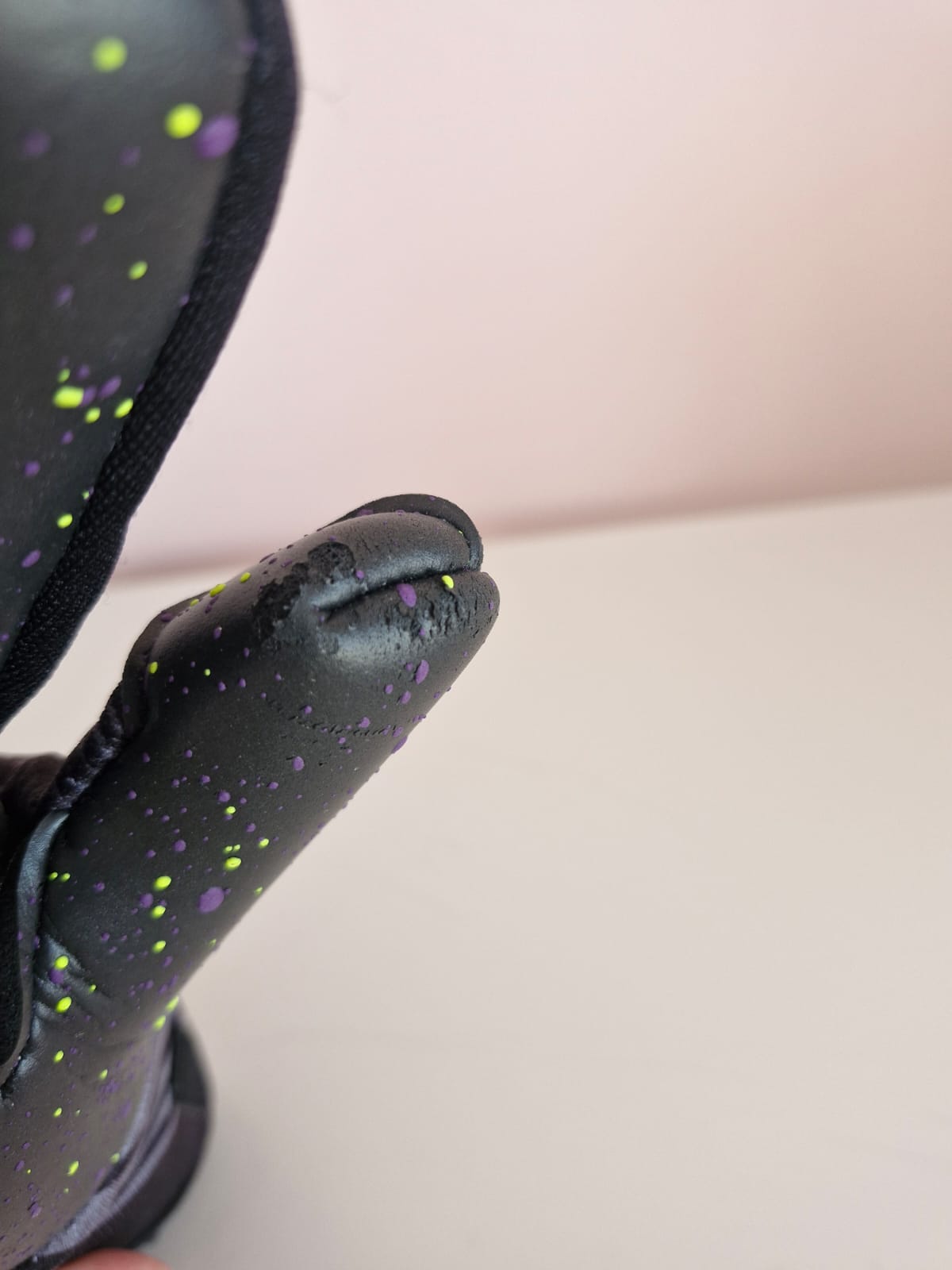 Dosul palmei este din spumă în relief cu densitate mare și cu culori unice.
