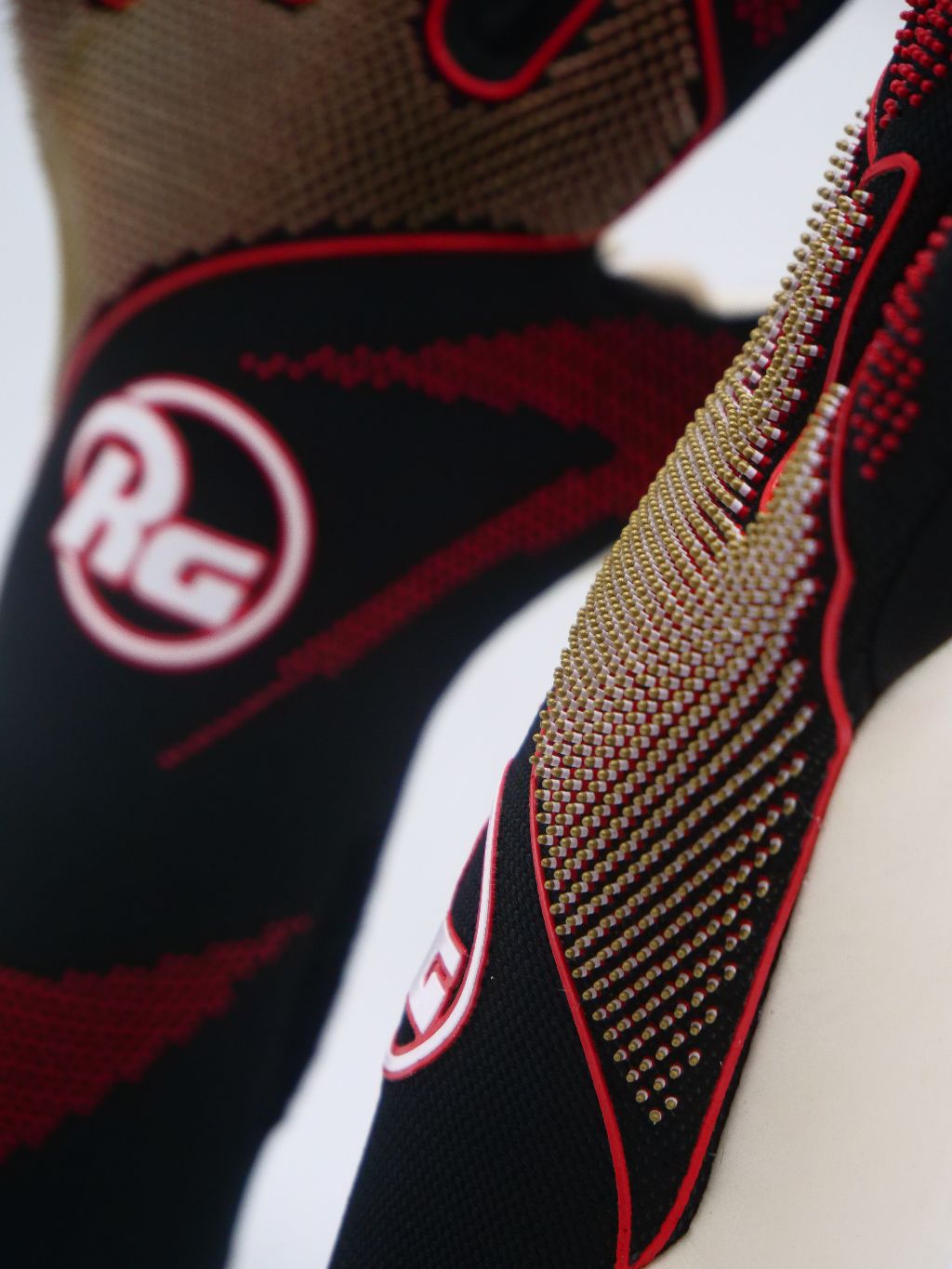 Toride dispune de Advanced Ergonomic Cut, o croială exclusivă RG, proiectată pentru a urma anatomia naturală și mișcarea mâinii. Construcția se adaptează perfect mișcărilor degetelor, oferind flexibilitate superioară și o potrivire precisă, sigură. Această croială avansată maximizează controlul și capacitatea de reacție, permițând portarului să fie complet conectat la fiecare acțiune, inclusiv în situațiile de joc cu presiune ridicată.