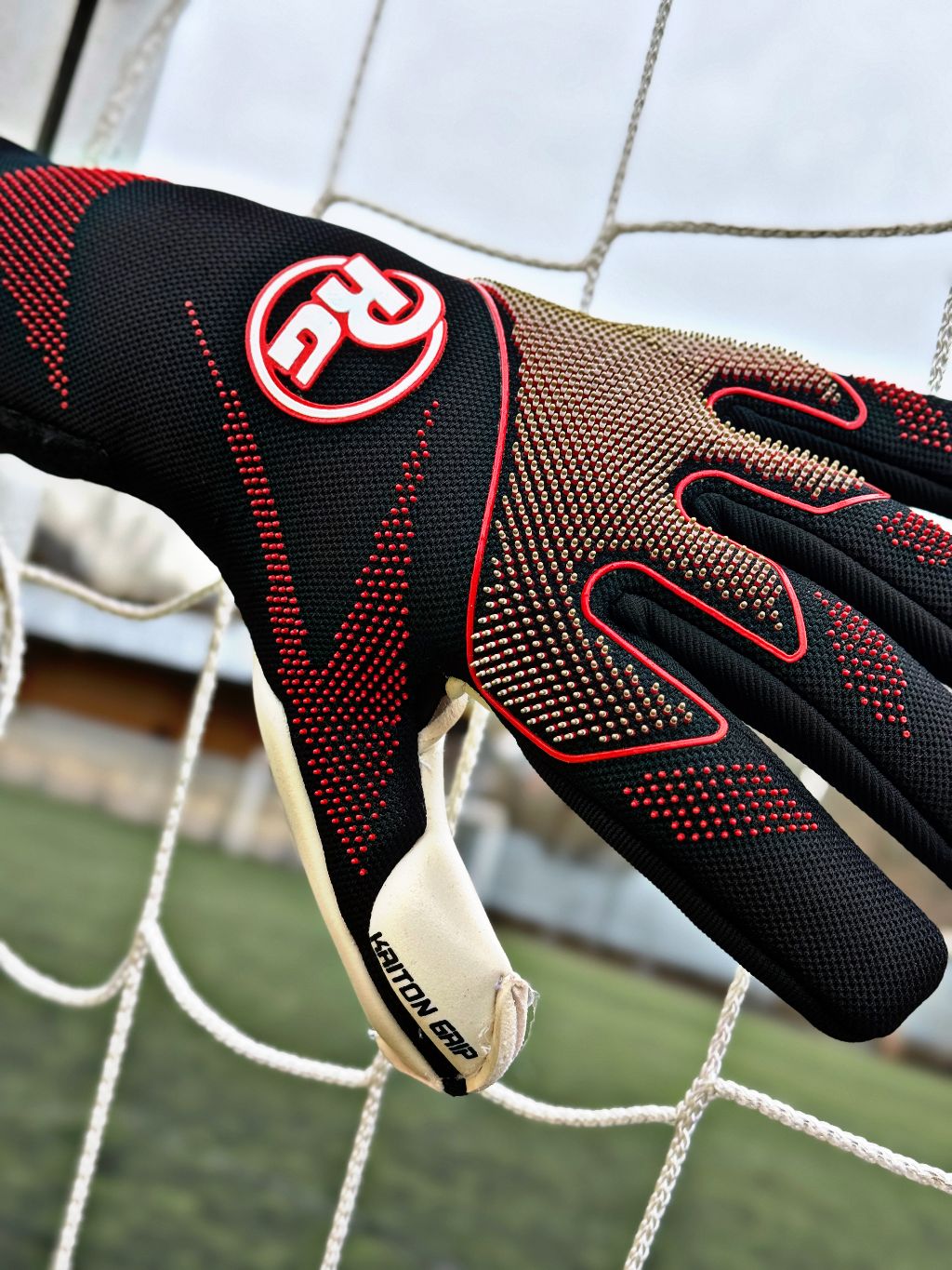 Palma este echipată cu KRITON GRIP, latex german premium de 4 mm, cu aditivi speciali de lipire. Această compoziție oferă aderență excelentă atât în condiții uscate, cât și pe ploaie, alături de rezistență ridicată la abraziune și absorbție eficientă a șocurilor. Designul cu palmă extinsă și textură embosată mărește suprafața de contact și controlul mingii la fiecare intervenție.