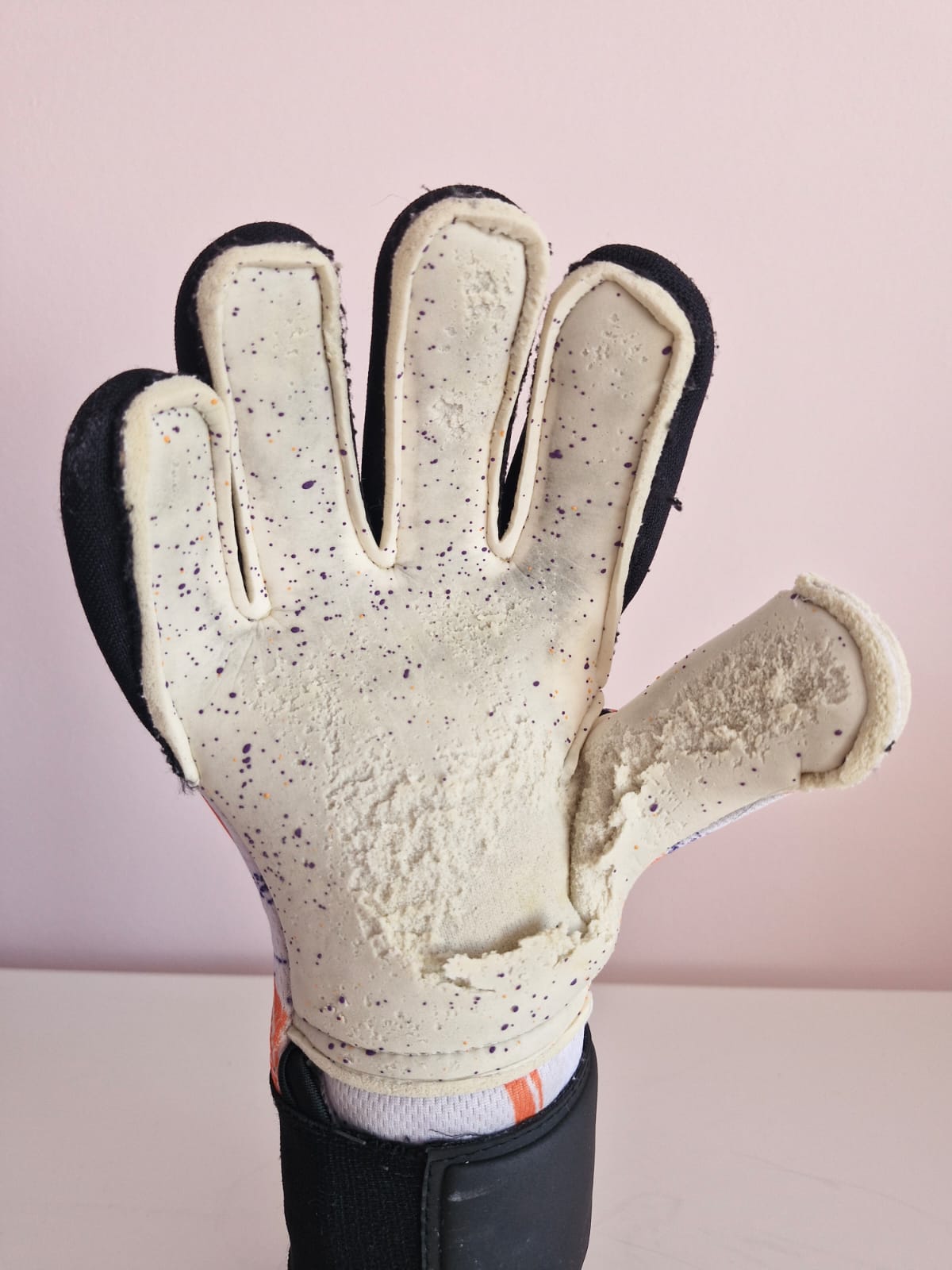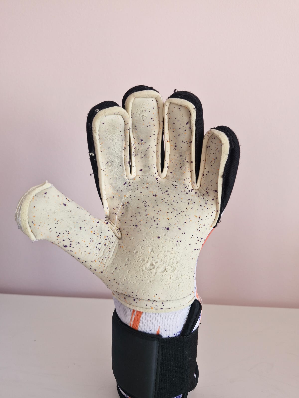 Palmă: Noul latex RG Dynami H-S 3.5+3mm vă oferă o rezistență mare la abraziune, aderență excepțională, amortizare suplimentară. Dezvoltat și fabricat în Spania pentru performanțe remarcabile în majoritatea condițiilor, capacitatea de a prinde mingea la cerințele portarului modern. Stratul suplimentar de puncte ajută la protejarea suprafeței originale a palmei și oferă capacitatea de a oferi control în condiții dificile.
